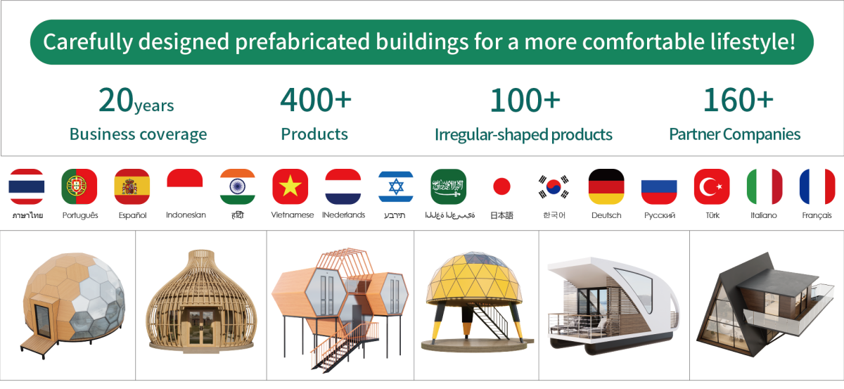 Meihua offers a variety of tiny houses, providing sophisticated hotel solutions for outdoor camping, resort, airbnb and personal living.
