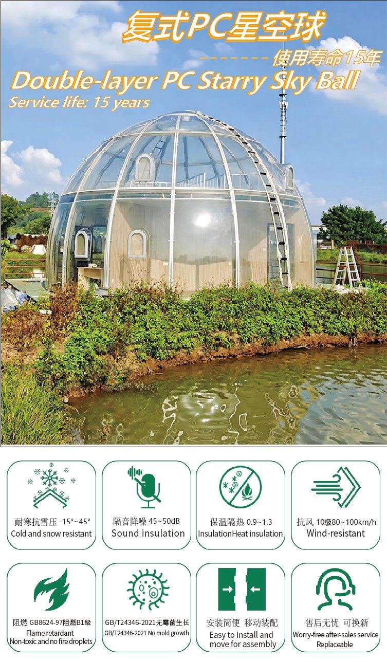 2-7M Single or Double Layer Starry Sky Transparent Dome Tent Geodesic Igloo Customizable 360 Degrees Prefabricated Polycarbonate Star Bubble House PC Dome House