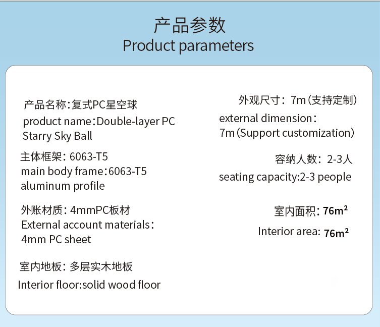 Product name: 7M Double Layer Transparent Star Bubble Geodesic Dome Tent House