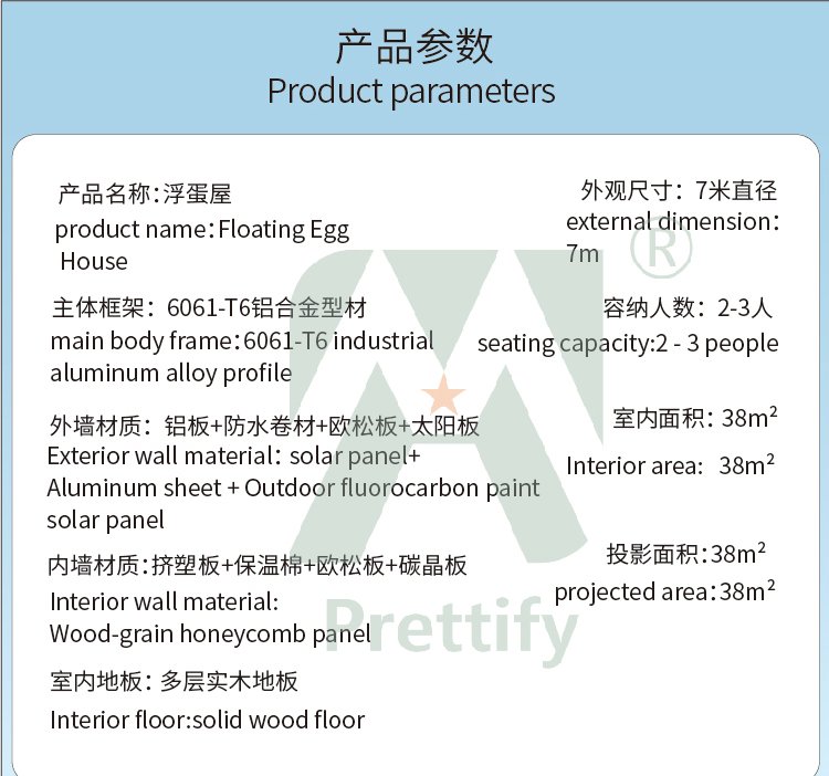 Product name: Luxury Prefab Egg-shaped Floating Water House