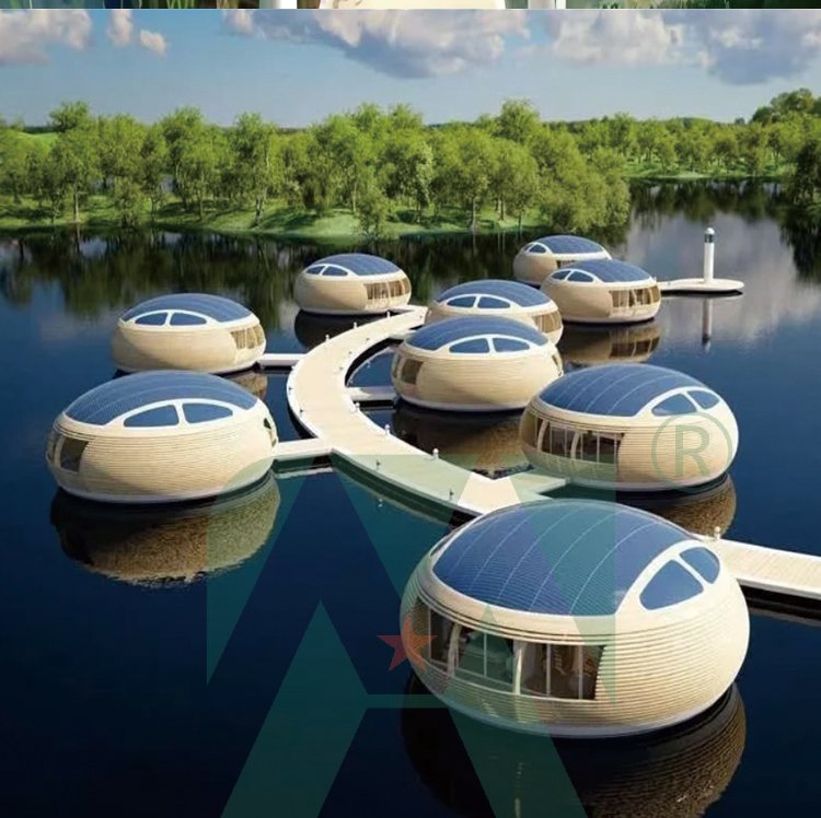 Custom Luxury Egg-shaped Floating House Water Cabin Prefab Aluminum House for Party and Fishing Pontoon House Villa Hotel