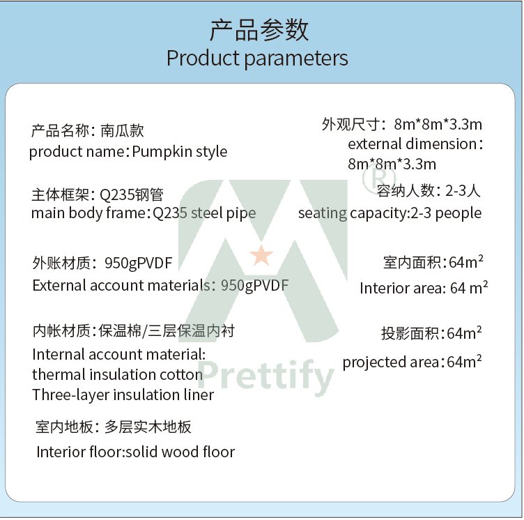 Product name: Pumpkin-shaped Steel Structure Safari Camping Tents