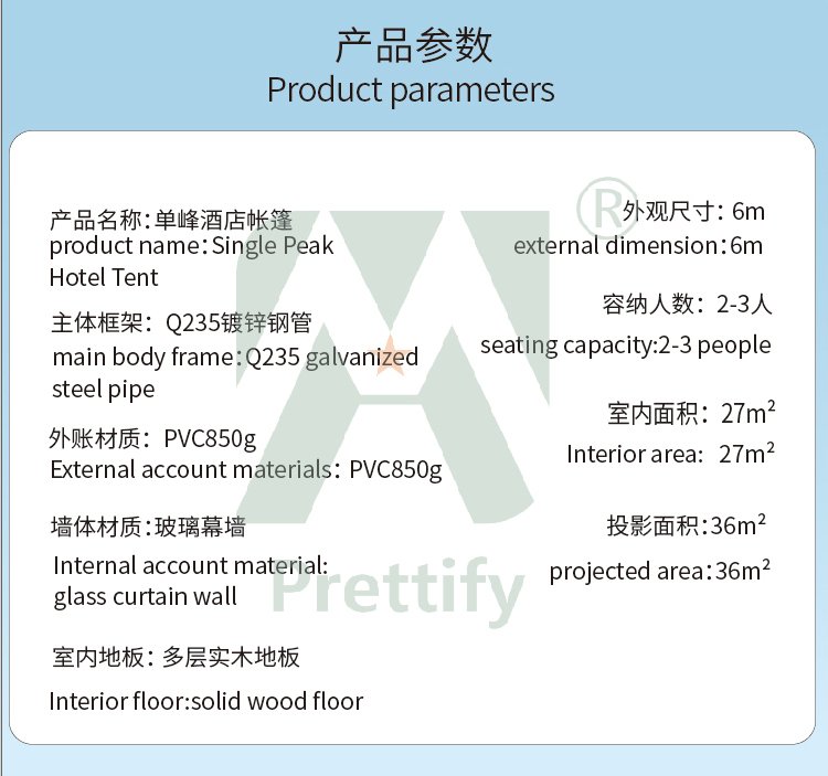 Product name: Single-Peak Roof House Hotel Glamping Safari Camping Tents
