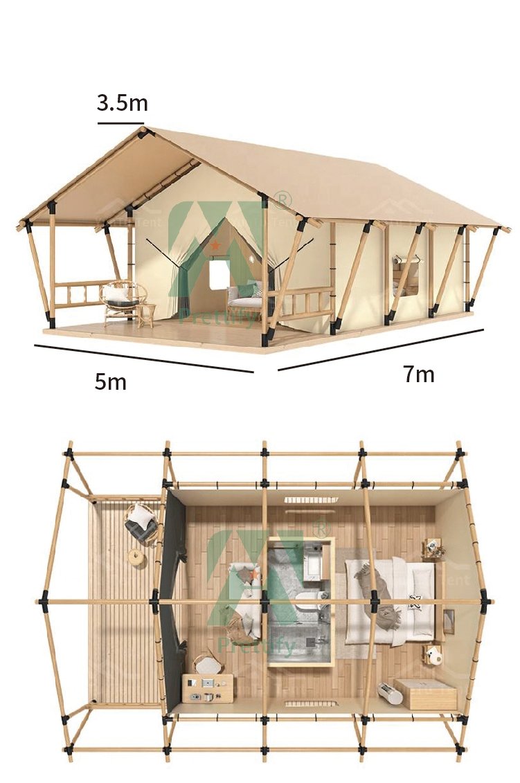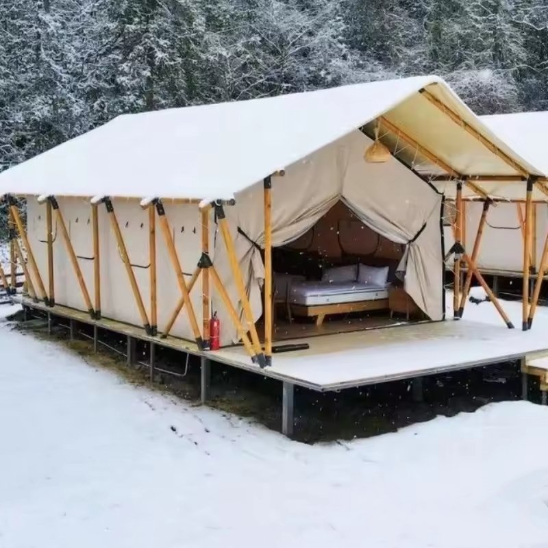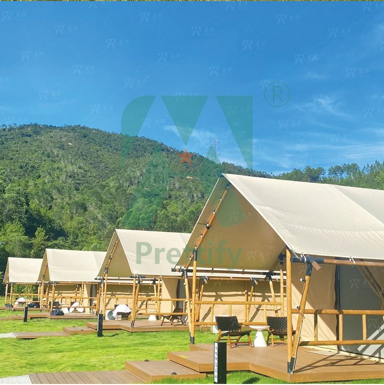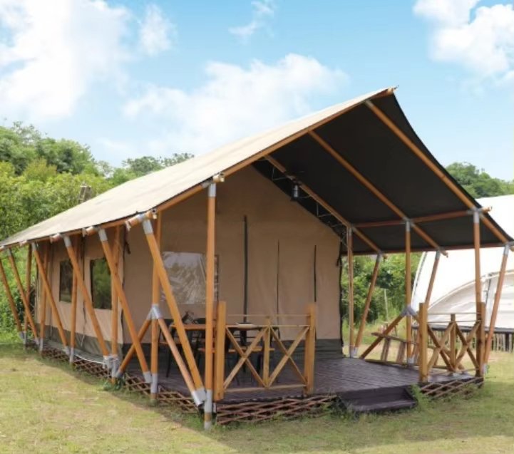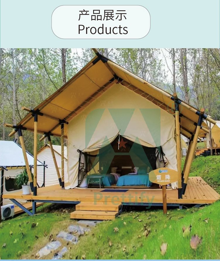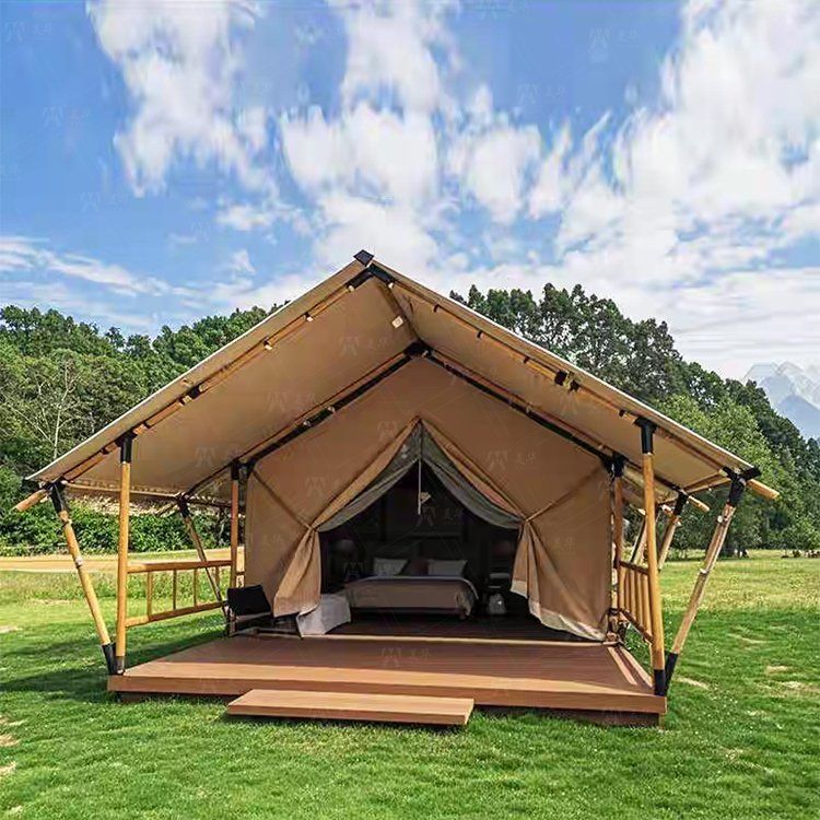 Customized Luxury Hotel Safari Lodge Glamping Tent Outdoor Waterproof Canvas Double V-shaped Column Pole Safari Camping Tents