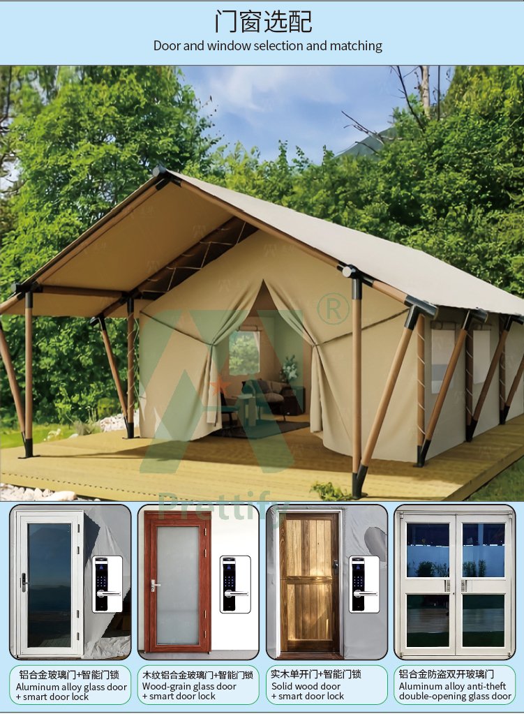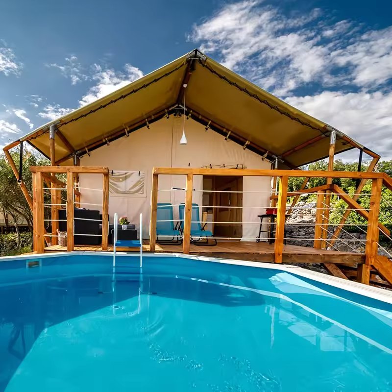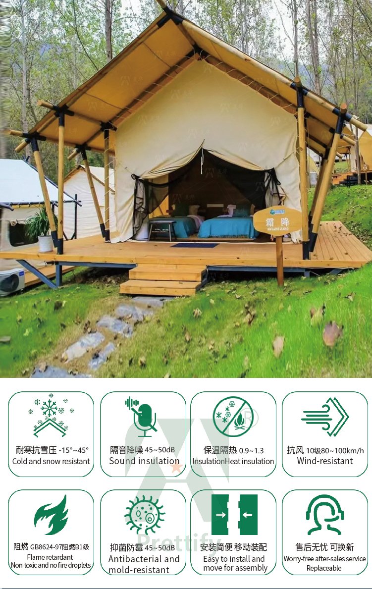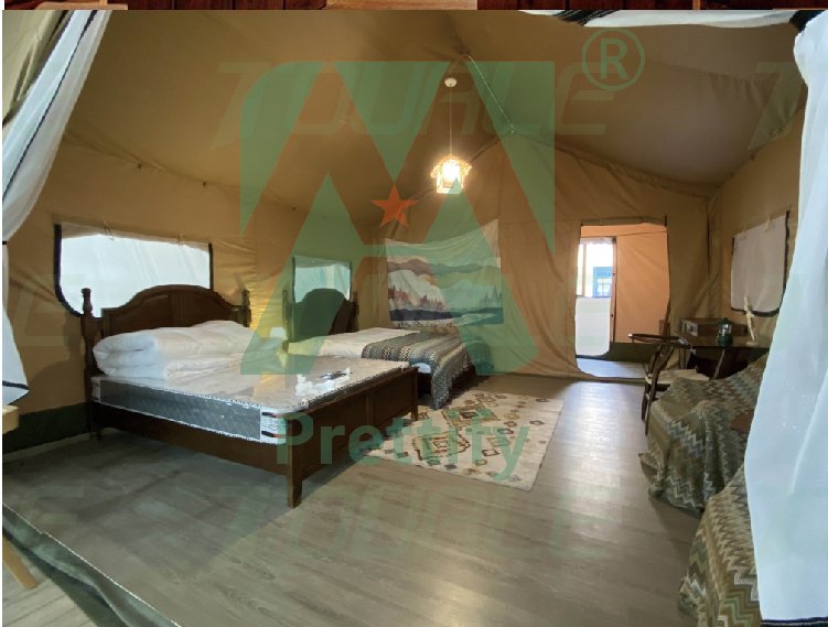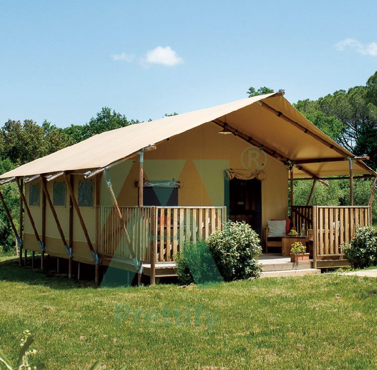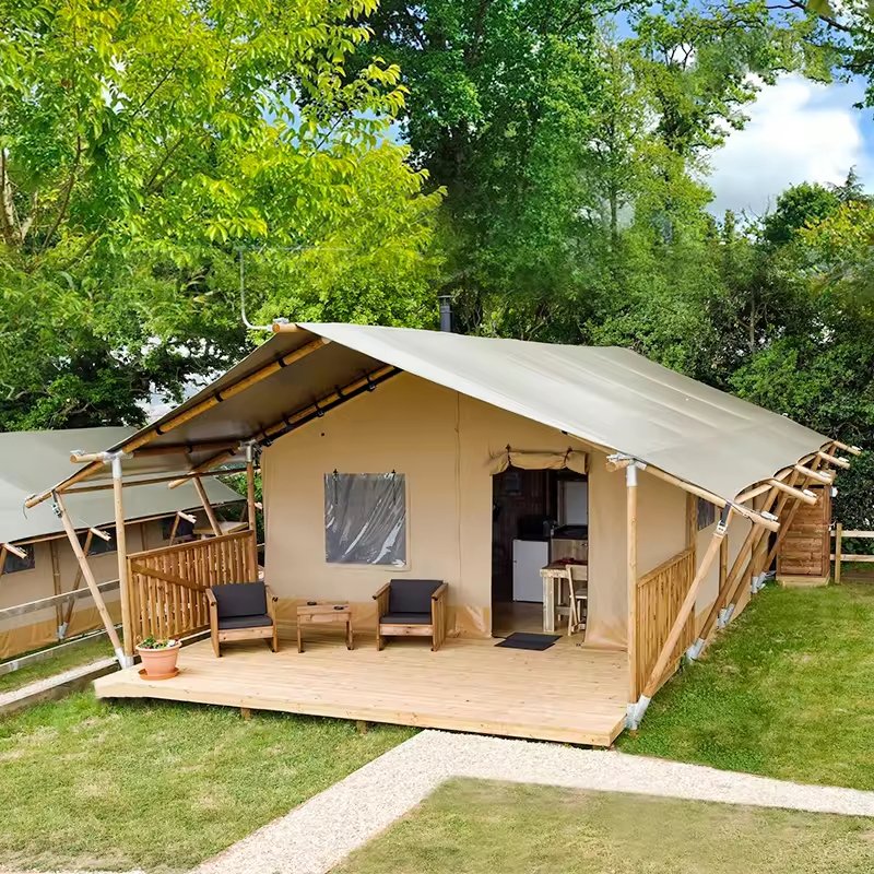 Customized Luxury Hotel Safari Lodge Glamping Tent Outdoor Waterproof Canvas Double V-shaped Column Pole Safari Camping Tents