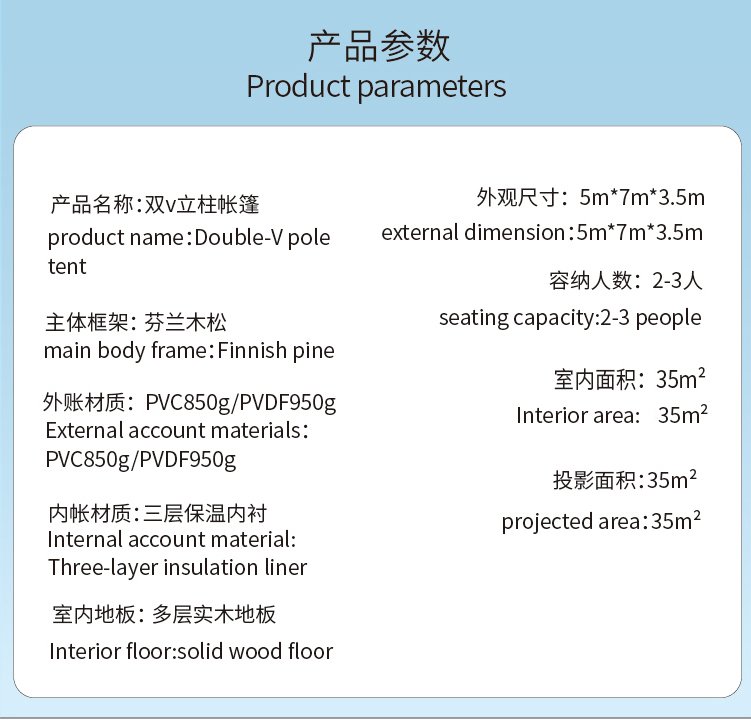 Product name: Double V-shaped Column Pole Glamping Safari Camping Tents