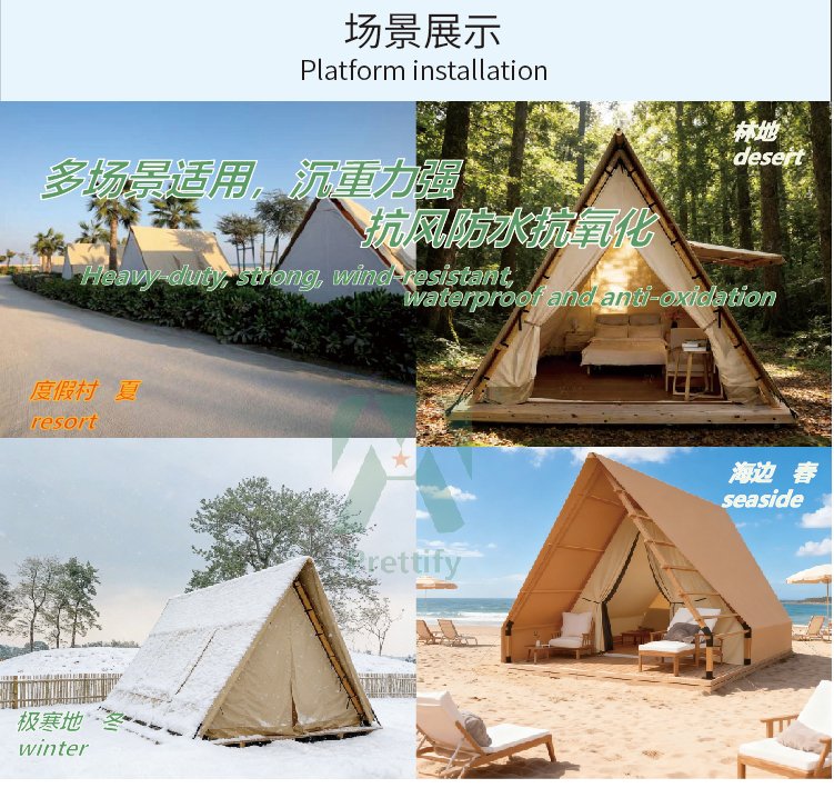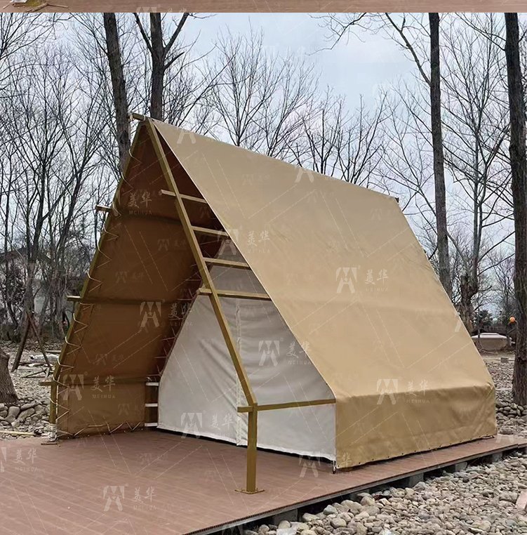 Customized Outdoor Triangular-shaped Tent Waterproof A-frame Entry Duplex Glamping Countryside Style for Safari Camping Tents