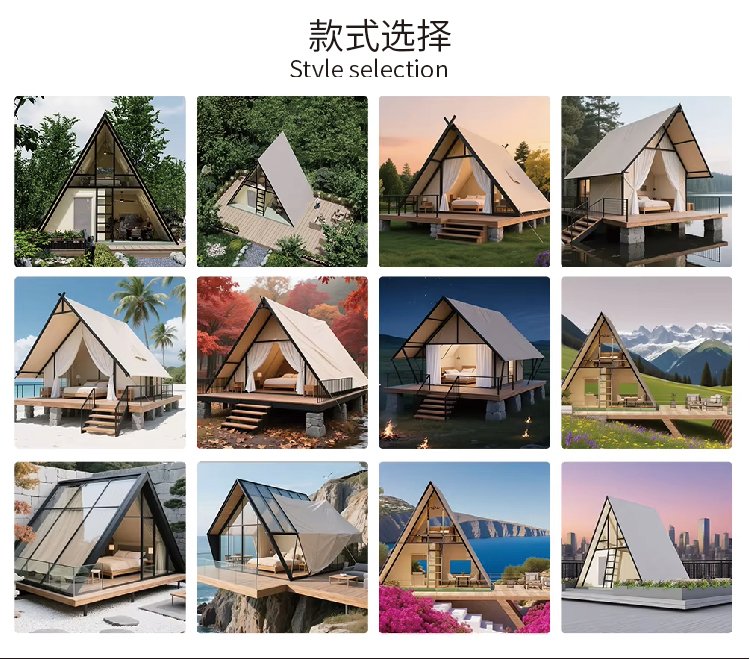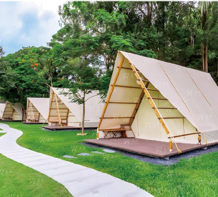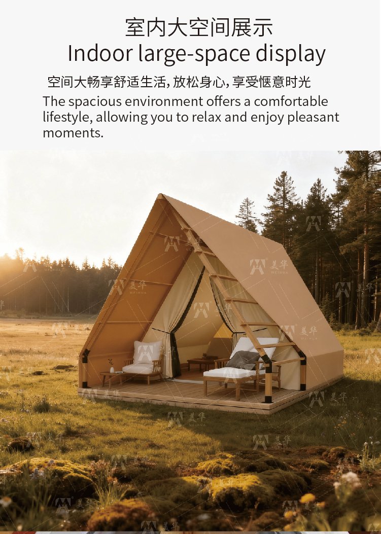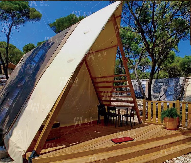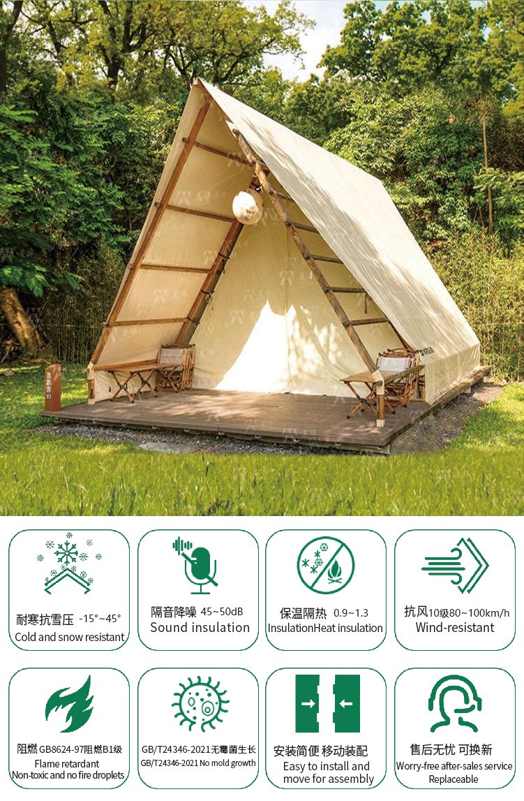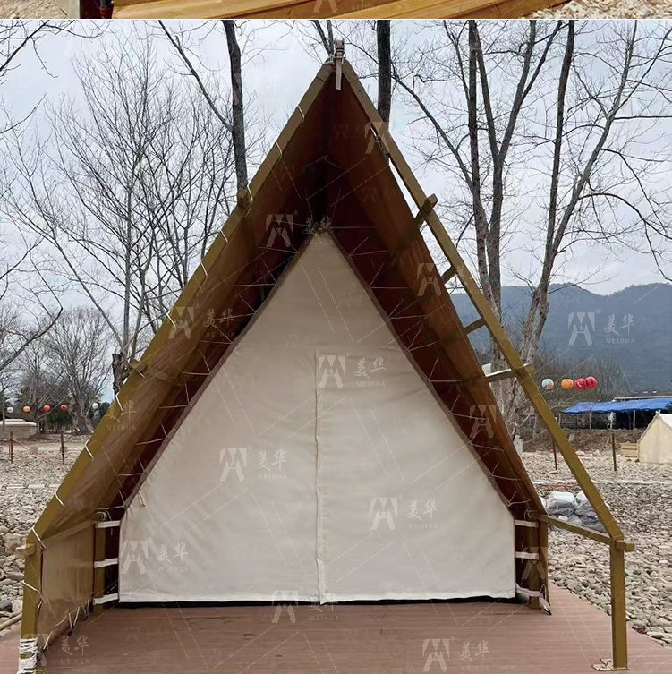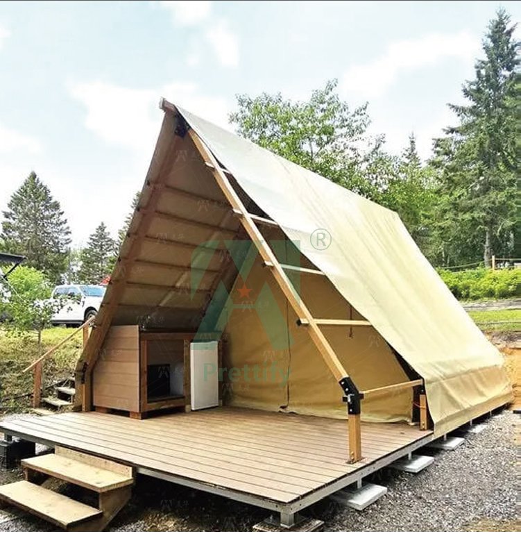 Customized Outdoor Triangular-shaped Tent Waterproof A-frame Entry Duplex Glamping Countryside Style for Safari Camping Tents
