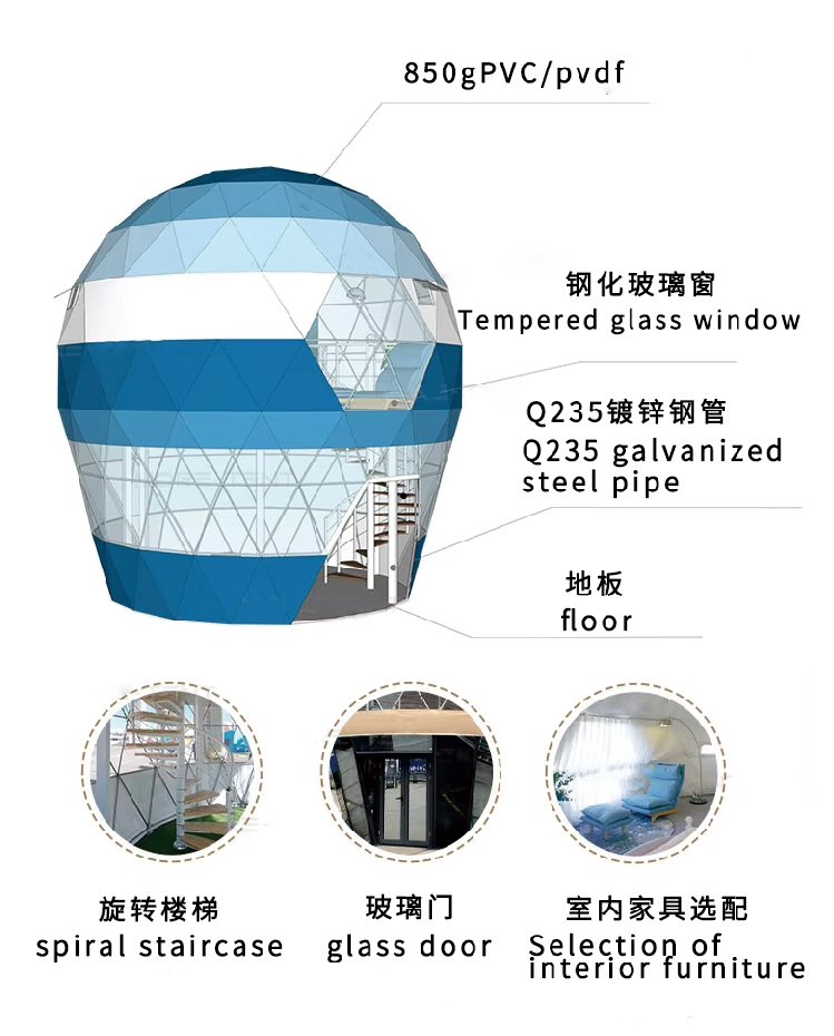 High Quality Two-Level Glass Glamping Geodesic Dome House Tent Double Layer Hot Air Balloon Tents for Hotel Resorts Trade Show