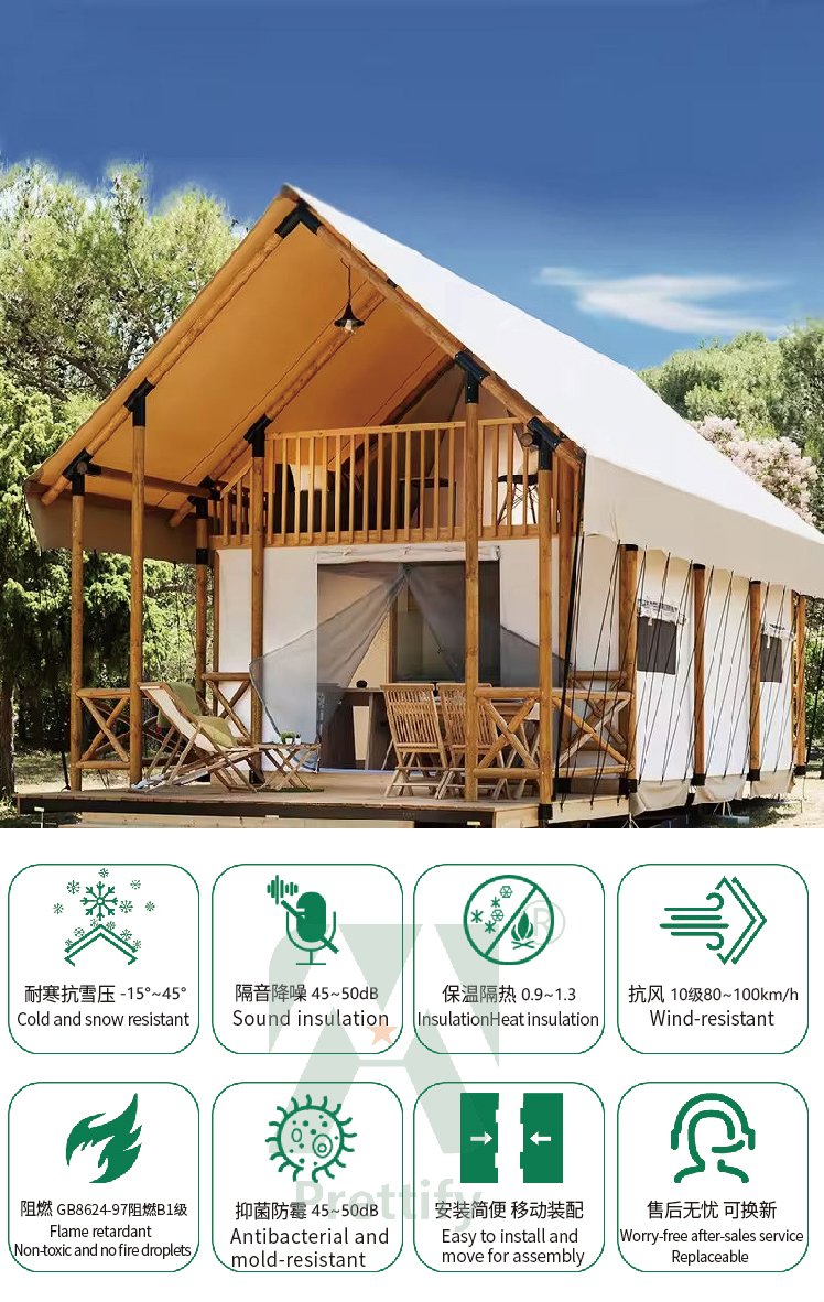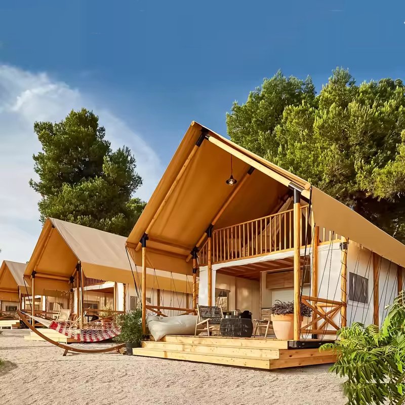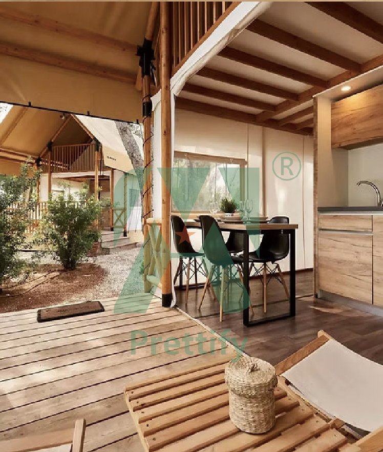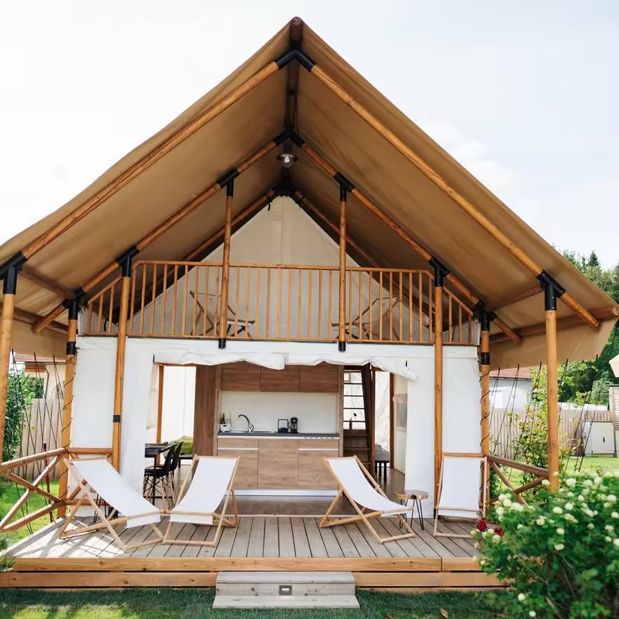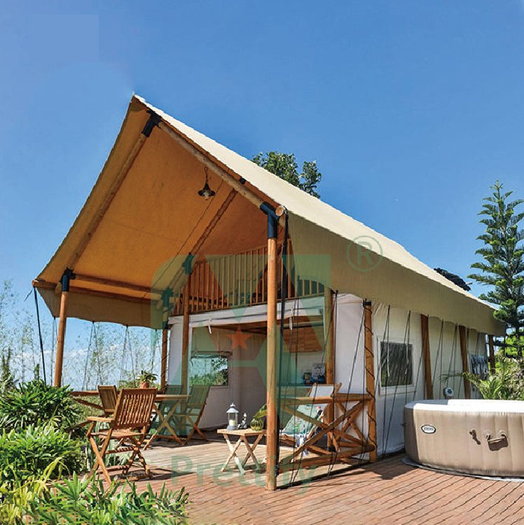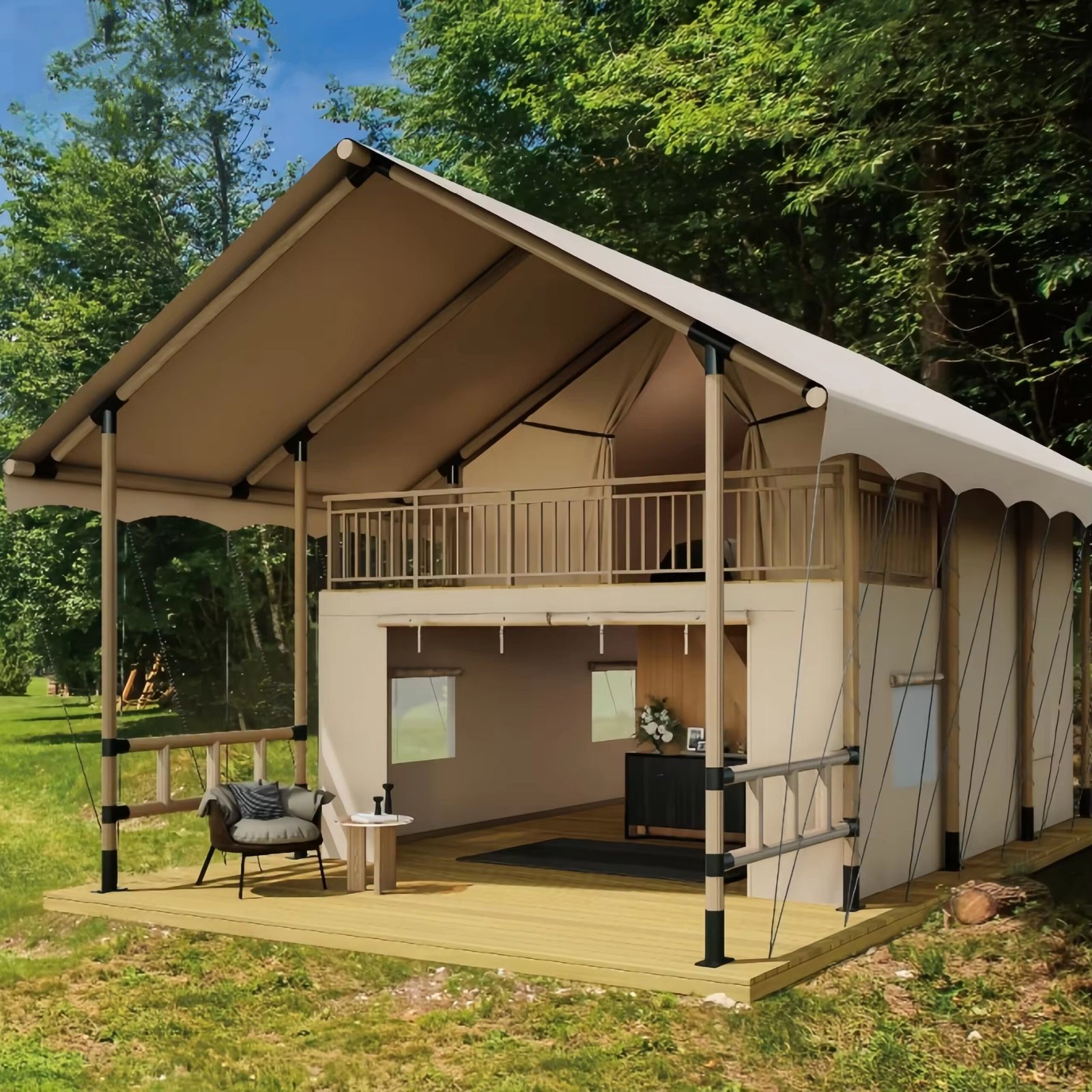 Professional Customized Outdoor Waterproof PVDF Wooden Pole X-shaped Nomad Double-decker Tent Hotel Room Canvas Tent Luxury Living Resort Glamping Safari Camping Tents