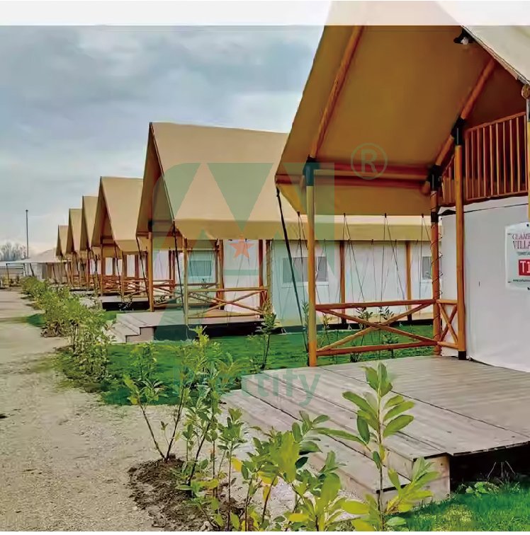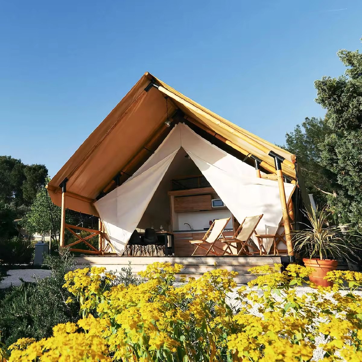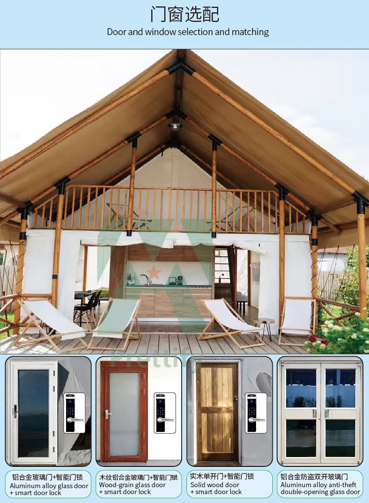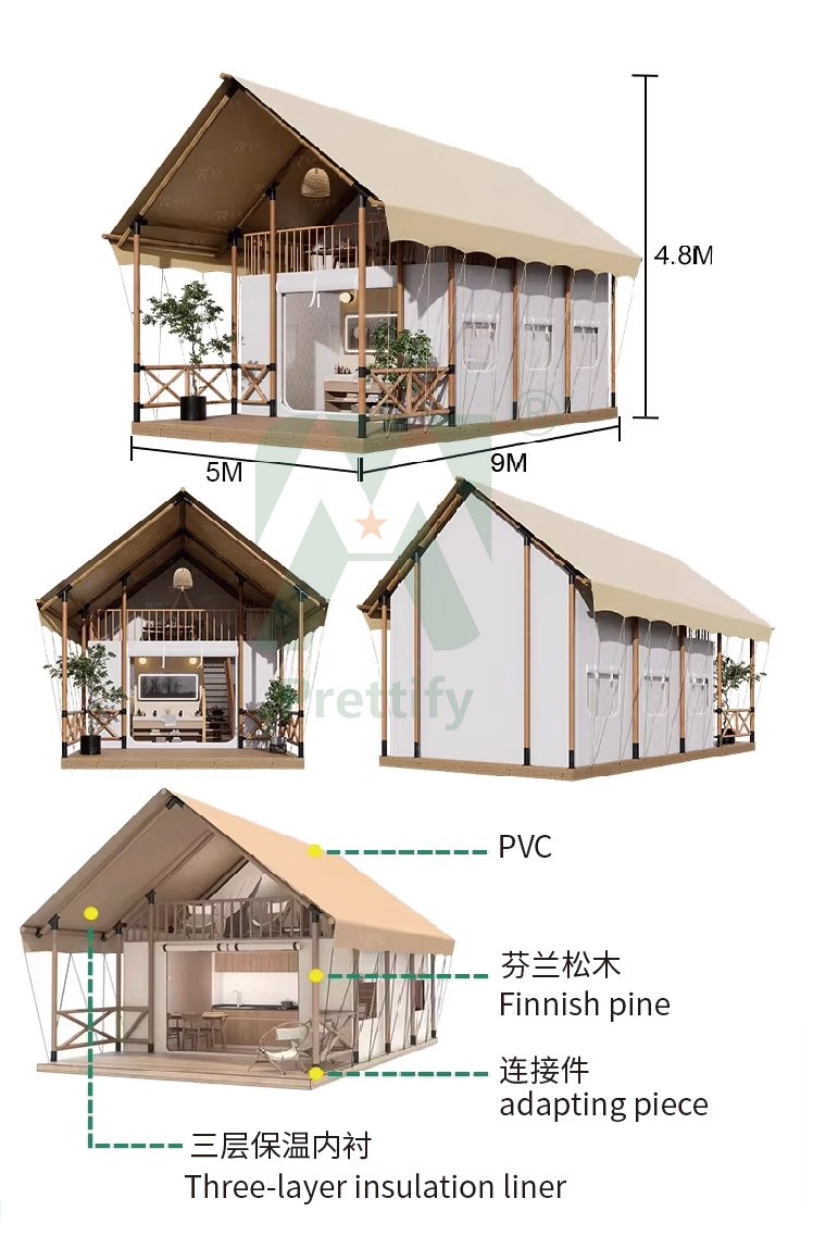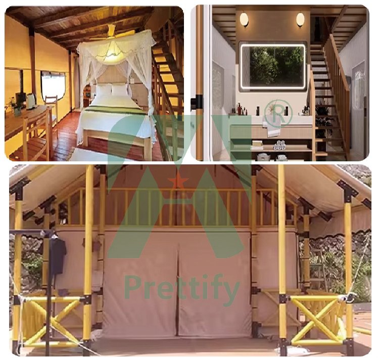 Professional Customized Outdoor Waterproof PVDF Wooden Pole X-shaped Nomad Double-decker Tent Hotel Room Canvas Tent Luxury Living Resort Glamping Safari Camping Tents