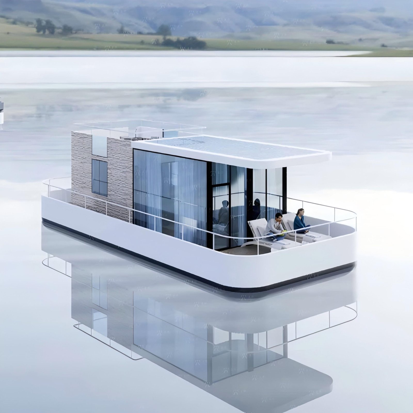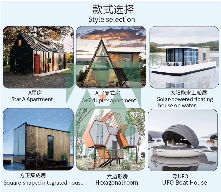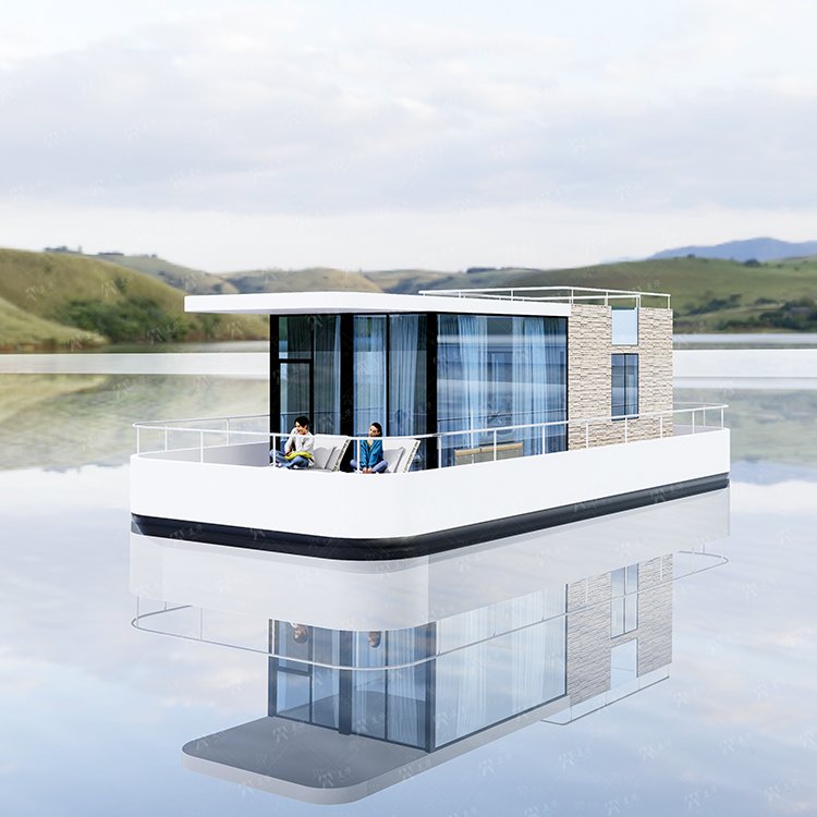Product name:Luxury Prefab Mobile Floating Solarpowered Electric Tiny Boat House